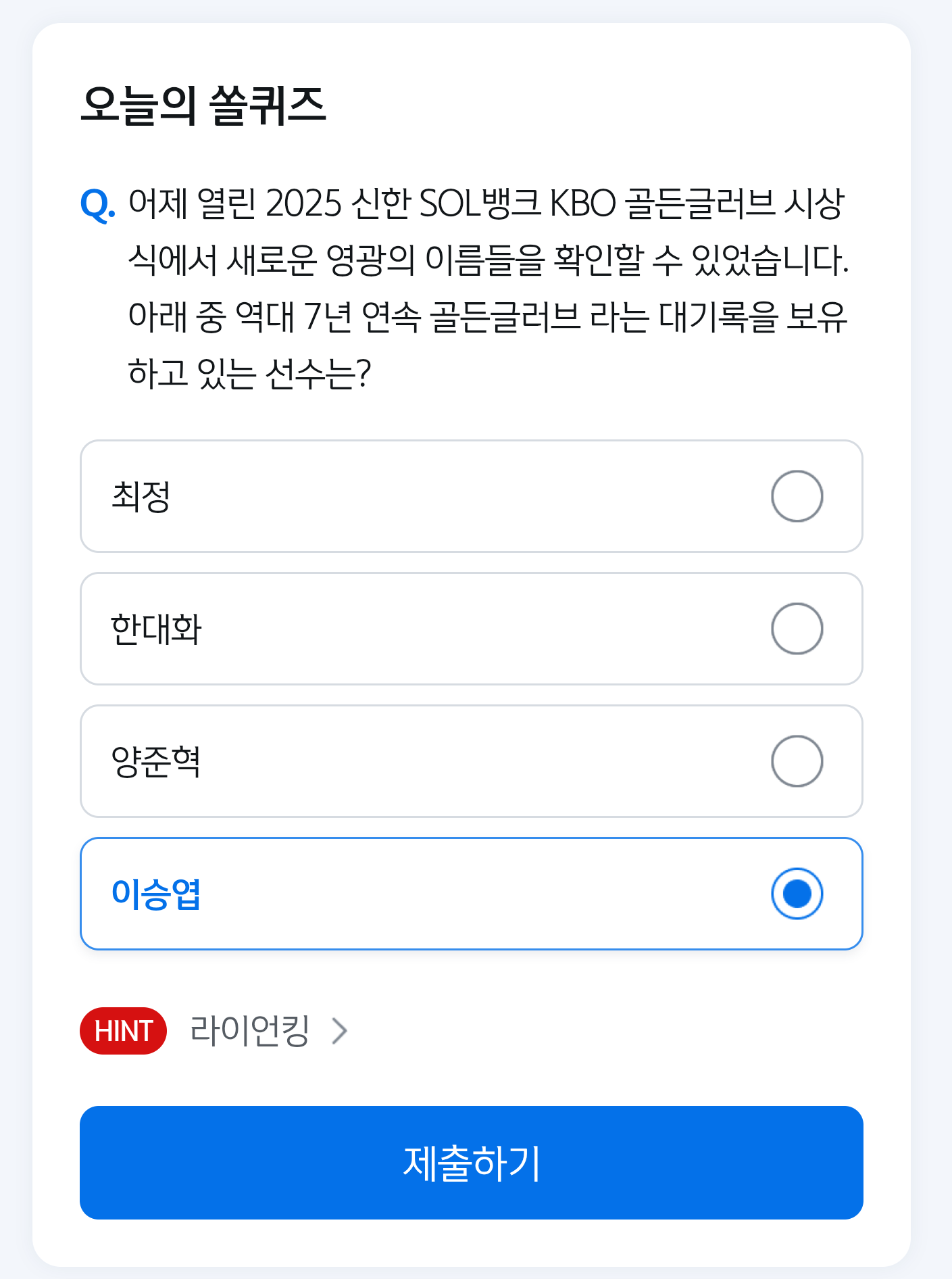 12/10 일 쏠퀴즈 쏠야구 퀴즈 #신한쏠 #sol #프로야구 #신한은행 #신한포인트 #신한카드 #신한금융그룹 #신한은행sol #쏠야구 #12월10일 #2025신한SOL뱅크 #2025신한프로야구적금 #2025신한프로야구정기예금 #예금 #우승팀예측 #마이신한포인트 #야구리그 #ox퀴즈 #프로야구적금 #신한야구적금 #신한프로야구적금 #KBO #2025년 #한국시리즈 #신한금융지주 #신한생명 #포스트시즌 #신한인증서 #야구 #스토브리그 #시범경기 #쏠픽 #위닝캘린더 #땡겨요 #올스타전 #월간MVP #가을야구 #포스트시즌 #퓨처스리그 #드래프트 #준플레이오프 #플레이오프 #신인 #mvp #골든글러브 #개막 #신한슈퍼sol #2025kbo개막